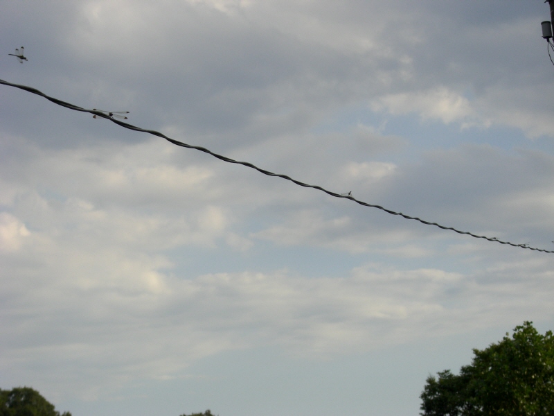 電線にトンボがいっぱいならんでいました。たぶん何十匹もいたはず。