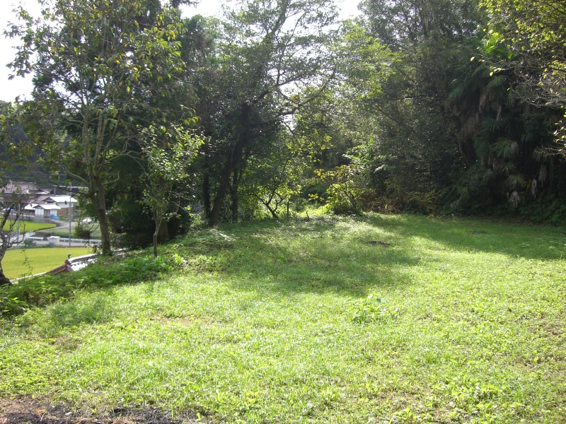 ここが城跡の一部。平坦になっているのが、なんとなくわかるかな。こんな場所が上にもあって全部で三段になっているみたい。ここにお侍さんがいたんだね。何をしゃべっていたんだろう。どんな言葉だったのかな?出羽の国の平鹿からきたというから、東北弁?