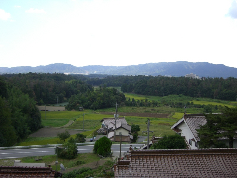 そこから山道に入り、途中から見える景色がこれ。ここが台地(盆地)ということが良くわかるね。右奥に見えるマンションは、私の住んでいる団地の中にある建物。もうずいぶん遠くまで来たもんだ。