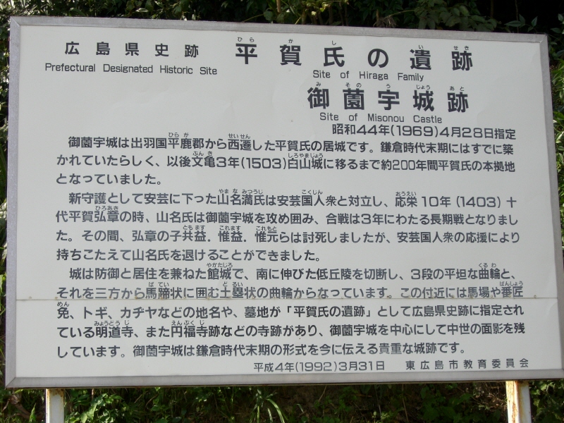 平賀氏のお城らしい。そういえば、このあたりには平賀さんという名前も多い気がする。一番多いのは木原さんじゃないだろうか?