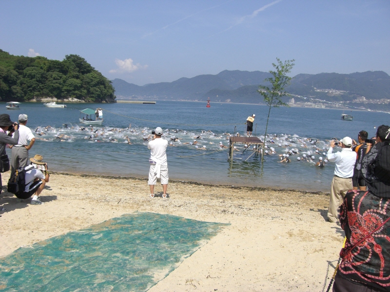 スイムスタート 入江を2周します