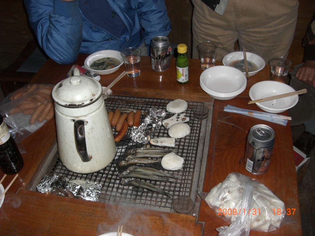 さらにテーブルの中央にセットした囲炉裏では、いろんな焼き物が。